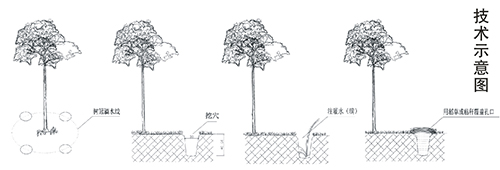 挖穴時要盡量避開樹的大根,以免傷根;高溫干旱天氣灌水以清晨或傍晚效果最好;一般情況下,每3~7天往穴內(nèi)灌水一次,以實際氣候狀況而定,但即使干旱時期也無需天天灌水。