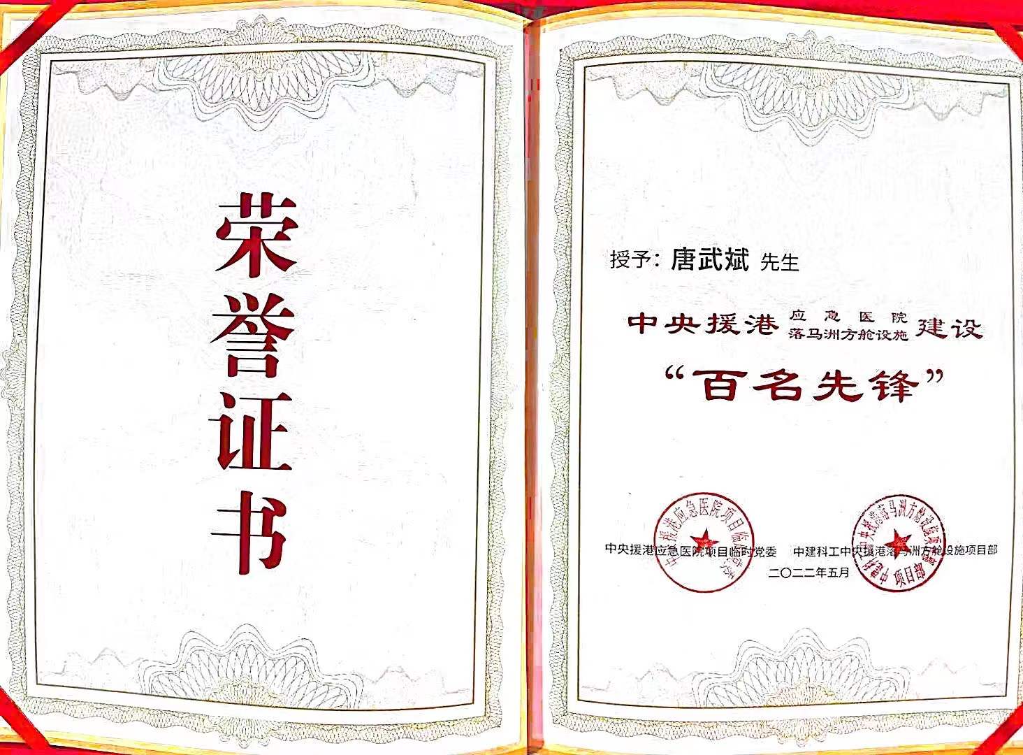 人文園林項(xiàng)目總經(jīng)理唐武斌獲得了“百名先鋒”建設(shè)獎(jiǎng)?wù)?/strong>